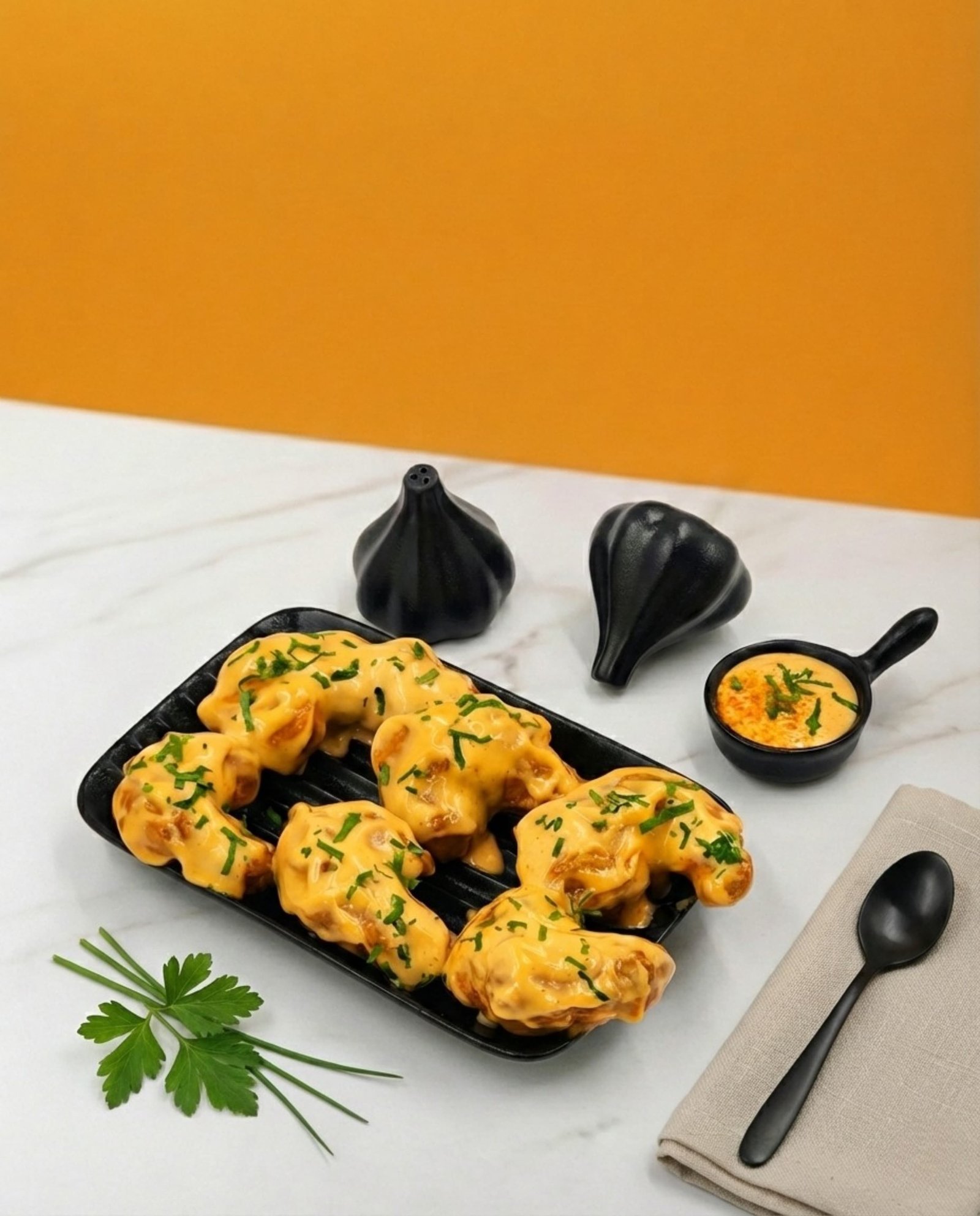 6 pieces shrimp marinated with spicy sauce served with chili spicy sauce.