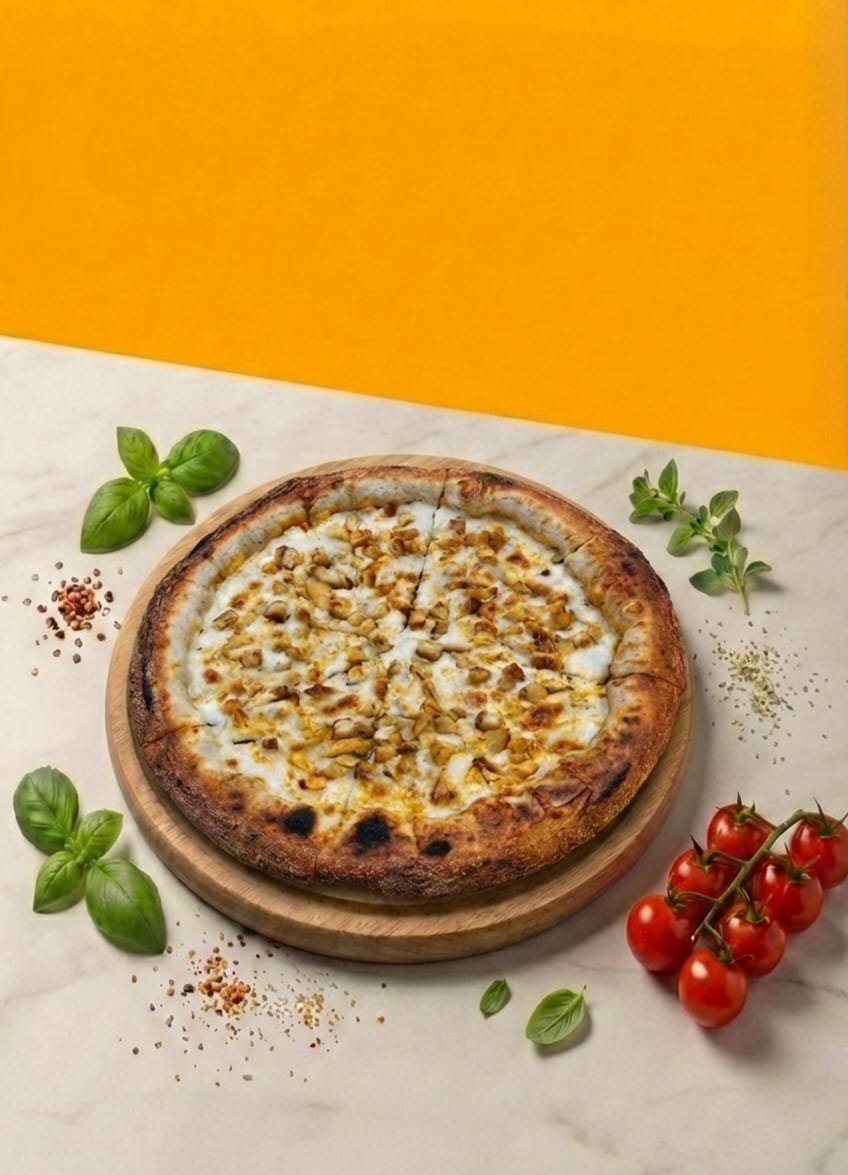Fresh mushroom, chicken, cooking cream with edamame cheese and forno sauce.