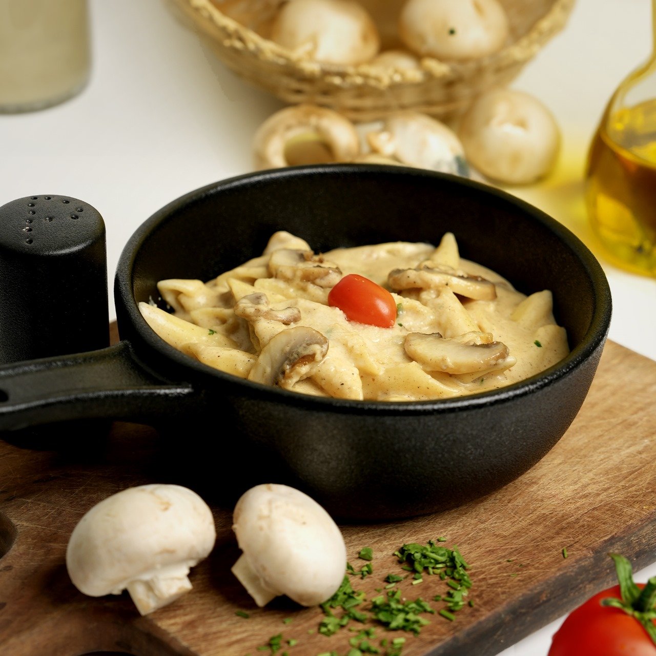 Fresh mushroom, chicken, cooking cream with edamame cheese and forno sauce.