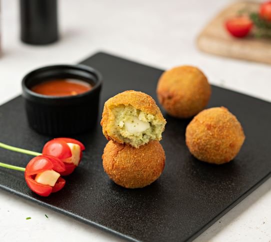 4 pieces crispy fried risotto balls stuffed with mozzarella cheese served with spicy marinara sauce.