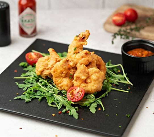 6 pieces shrimp marinated with spicy sauce served with chili spicy sauce.