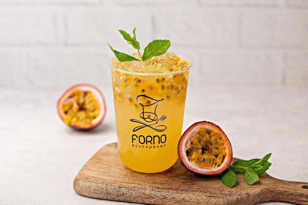 Fresh passion fruit. Passion fruit syrup mixed with 7UP.